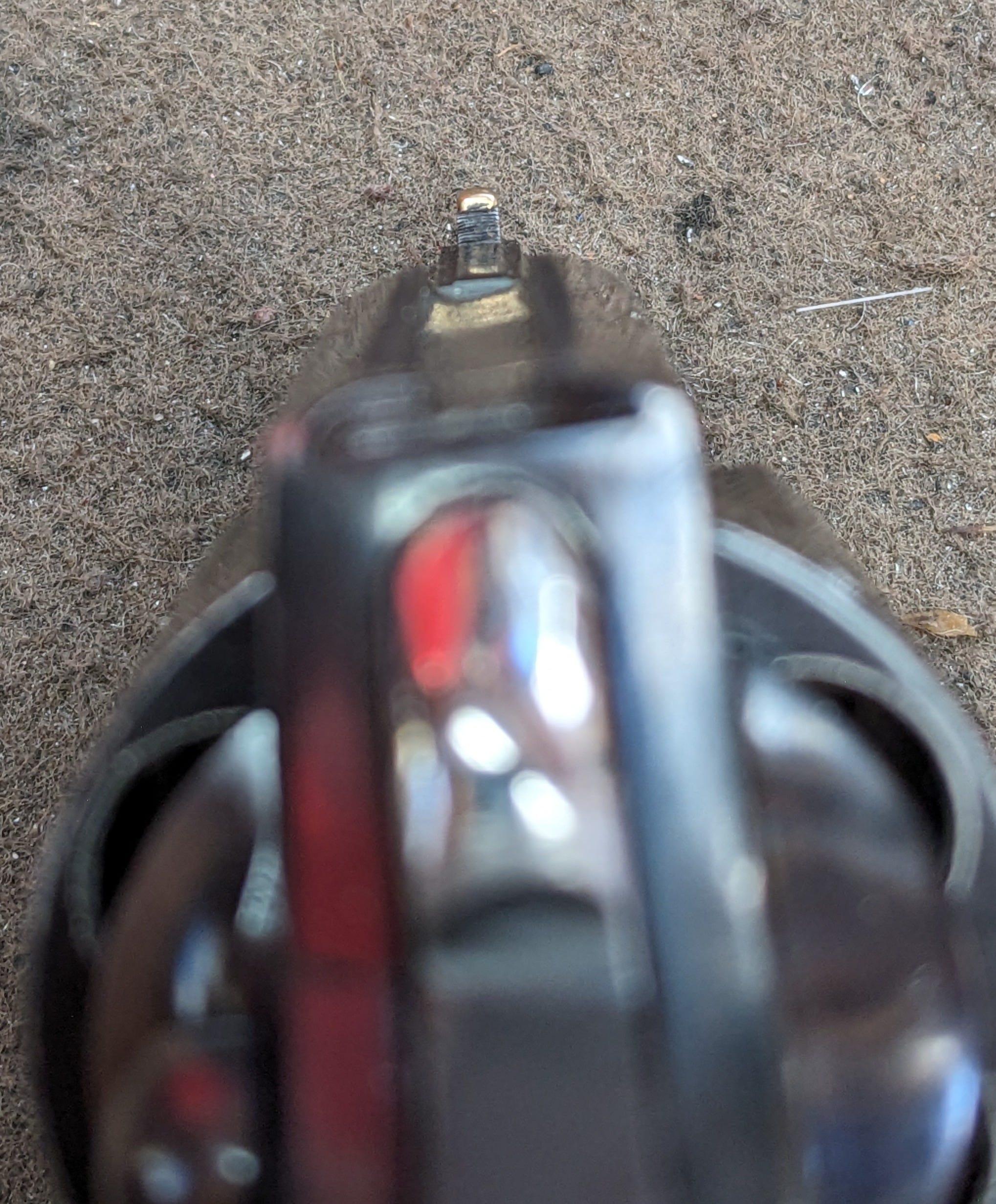 The final modification that was requested was a brass bead front sight—a classic choice for a classic revolver that is immensely practical. I chose to modify the sight shape to both enhance the appearance of the gun and improve the sight picture. I began by filing the rear of the sight ramp down to the level of the barrel. This allowed me to increase the angle of the front sight and serrate the flat surface with a checkering file.