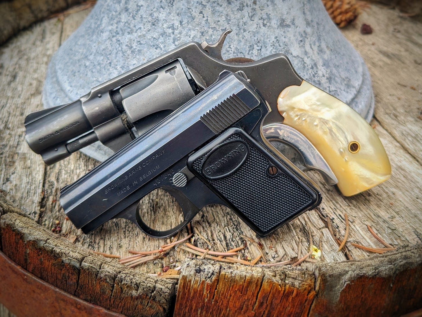 I define mouse guns as anything that will fit in your back pocket. I wouldn’t classify a Smith & Wesson J-frame as a mouse gun, but I would probably classify a Taurus View as one. The Taurus View was a short-lived, 5-shot revolver with the same frame size as a J-frame, but with a barrel that barely clocked in at an inch and a truncated grip that literally only had enough real estate for a single finger. The “View” portion referred to a Lexan-type sideplate that reduced weight and allowed the owner to see the gun’s inner workings. It was absolutely bonkers, and on my short list of mouse guns, should I find one at a reasonable price someday. I have often thought about recreating my own version using an old Smith, a project for down the road. I will intermingle some images of a few of my mouse guns, but probably the most quintessential mouse gun was the FN-made Baby Browning. Introduced in the 1930s, it was essentially a shortened, simplified version of the 1905 model. Chambered in 25 ACP, it’s more likely to draw blood from the shooter due to its vicious slide bite than from any assailant, but it was quite popular and remained in production for over 40 years. I own a Baby Browning, and while it is absolutely atrocious to shoot, when you need a gun that fits in an Altoids tin, it’s one of your few options.